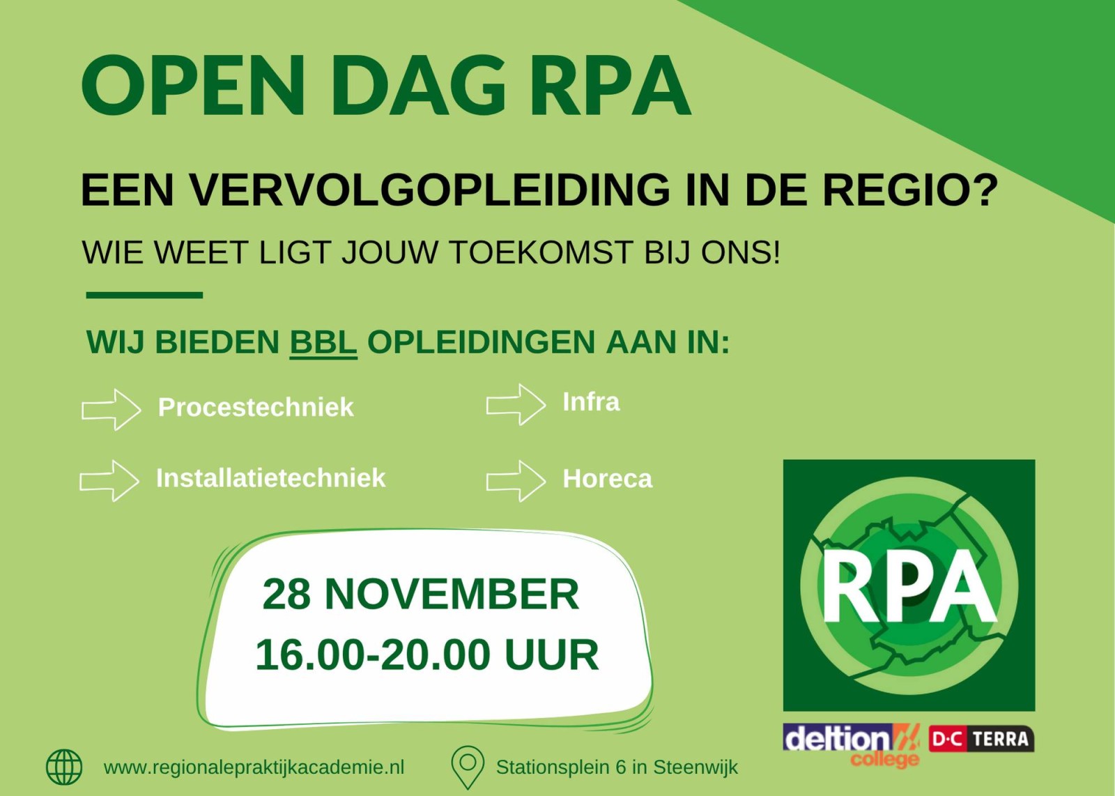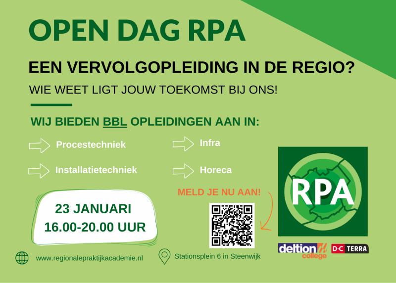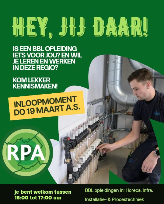 Pas jij graag de theorie uit de boeken meteen toe in de praktijk? Dan is de Regionale Praktijk Academie (RPA) echt iets voor jou. Bij ons is alles gericht op de praktijk. En dat betekent: werken en leren tegelijk. Mét meteen een goed salaris! Bij de RPA krijg je een erkend MBO-diploma. En nóg mooier: je hebt gegarandeerd een werk.